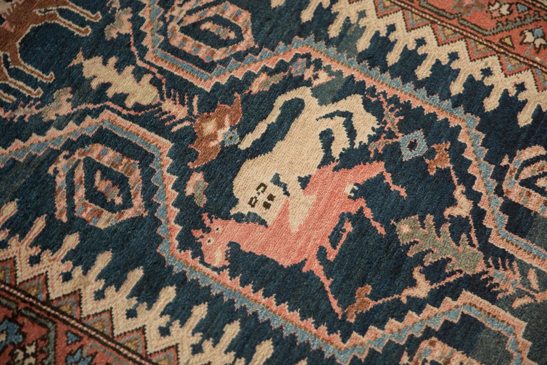 The 1920s Antique Persian Malayer Rug Runner is a living story—a woven narrative of artistry, myth, and movement from the golden age of Persian craftsmanship. Hand-knotted in the village of Malayer, Persia, this runner stands as a remarkable example of pictorial weaving, where pattern meets storytelling and color becomes language.