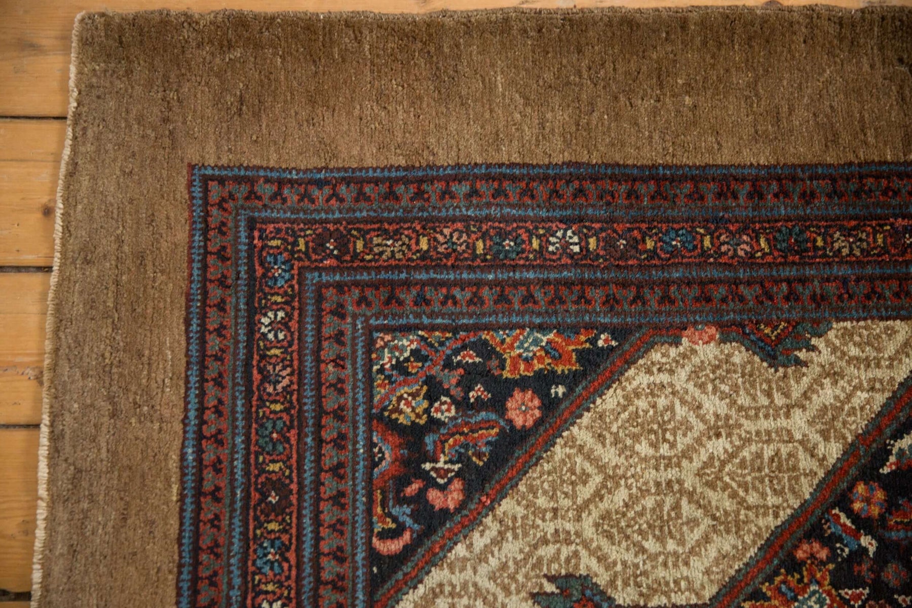 As sunlight drifts across its surface, the rug reveals subtle texture shifts—each fiber a reminder of the organic materials and hand-dyed wools used by early 20th-century Serab weavers. The original camel-ground borders frame the central design in rhythmic symmetry, giving the piece both structure and serenity. Its even wear to the knot heads is a testament to the authenticity and longevity of this heirloom-quality textile.