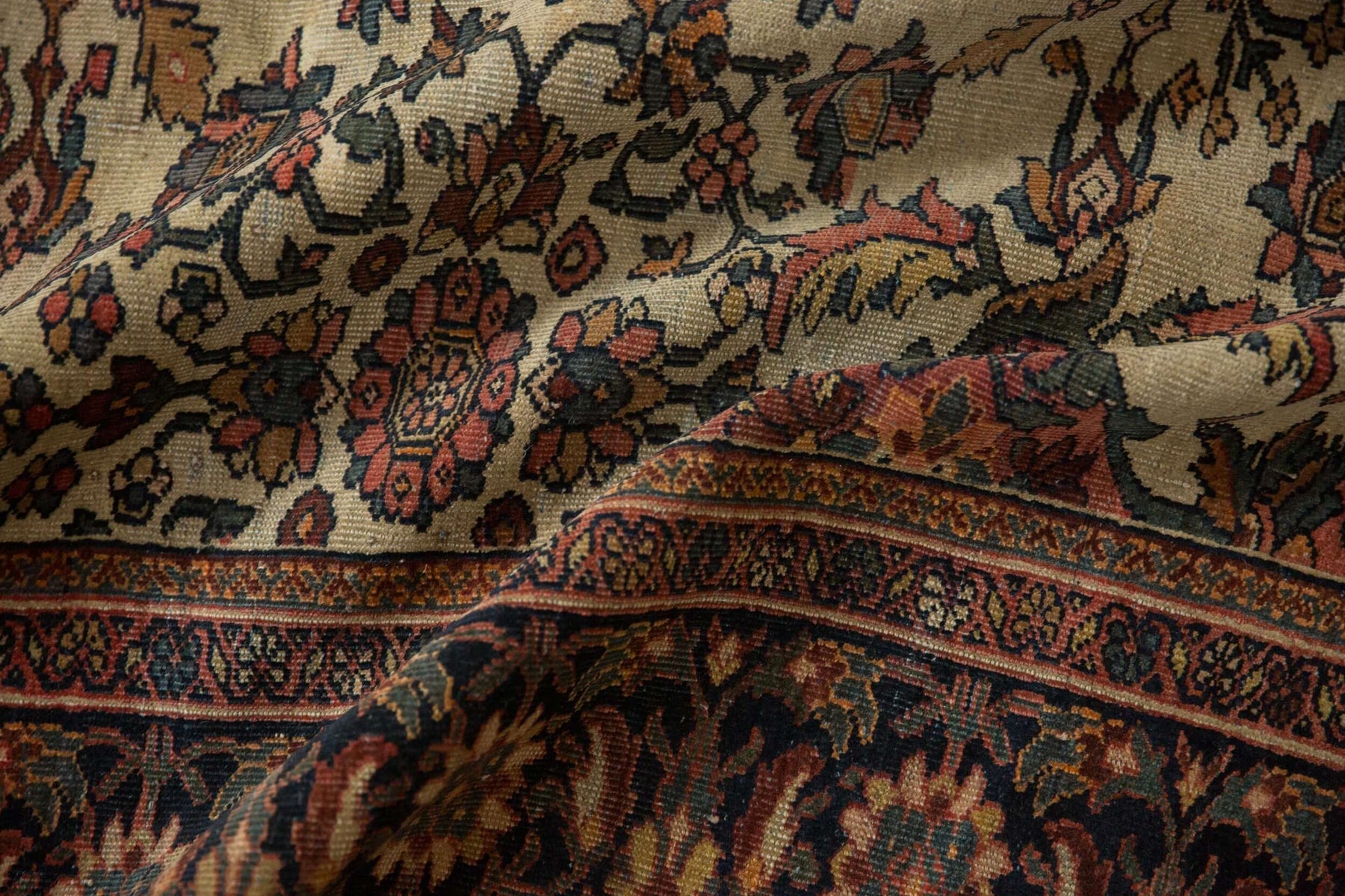 Hand-knotted Persian wool pile on cotton foundation, circa 1910s