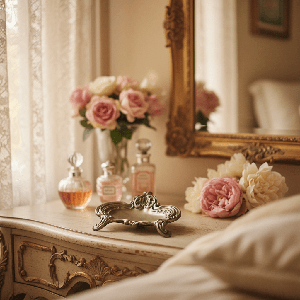 True to the Vintage Glamour aesthetic, this jewelry dish honors the artistry and decadence of the Baroque age. Each scroll and flourish has been carefully molded to echo the craftsmanship of the 18th century—ornamentation meant not just for beauty’s sake, but to elevate everyday rituals. Imagine removing your rings in the evening and hearing the faint metallic whisper as they fall onto the dish’s cool, gilded surface. Or catching a glimpse of its gleam beside a porcelain perfume bottle as morning light filters through lace curtains.