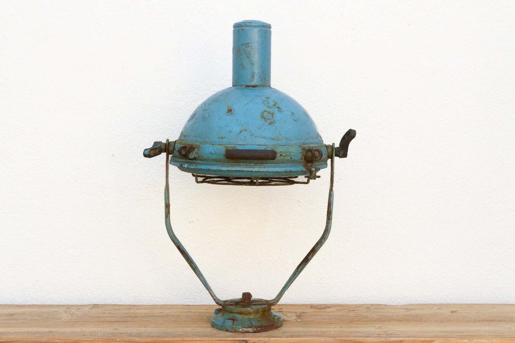 In an Industrial interior, the Antique Nautical Ship Spotlight brings a sense of authenticity and scale that few objects can match. It sits perfectly atop a reclaimed wood console, beside a leather armchair, or on a minimalist plinth where its texture and form can be admired as art. The combination of oxidized blue paint, aged metal, and glass gives it a painterly presence — at once raw and refined. It can easily be rewired for soft ambient light or left as a purely decorative statement, preserving its original patina and history.