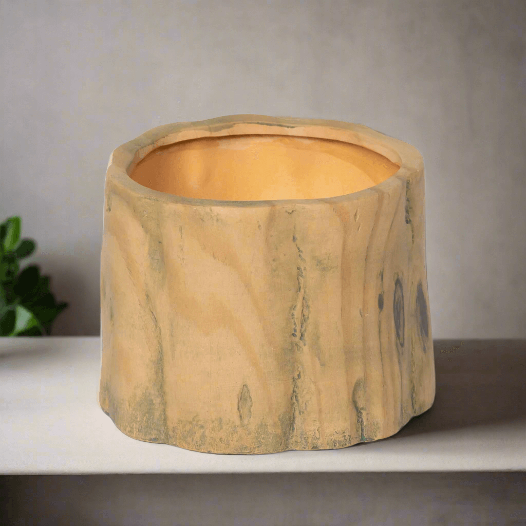 Sized at 6 inches, the Faux Wood Tree Stump Planter is perfect for planting small succulents, seasonal blooms, or fresh seedlings. Imagine a burst of greenery sprouting from its rustic form on a sunlit windowsill, a cottage kitchen shelf, or tucked into a garden nook where it looks as though nature itself placed it there. Its whimsical charm feels both nostalgic and timeless—like something you might discover in a storybook woodland garden.