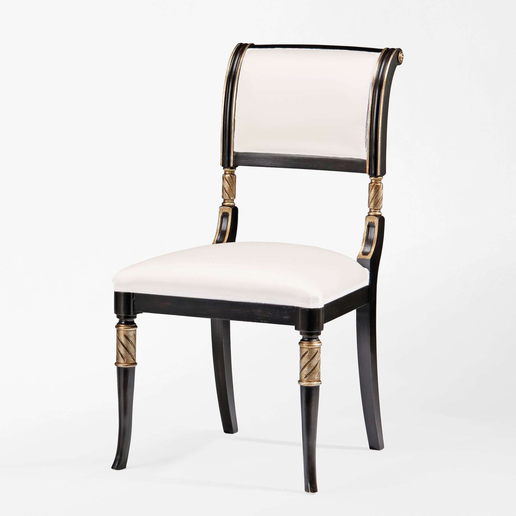 Vintage Italian Neoclassical Black Side Chair with Silver Leaf