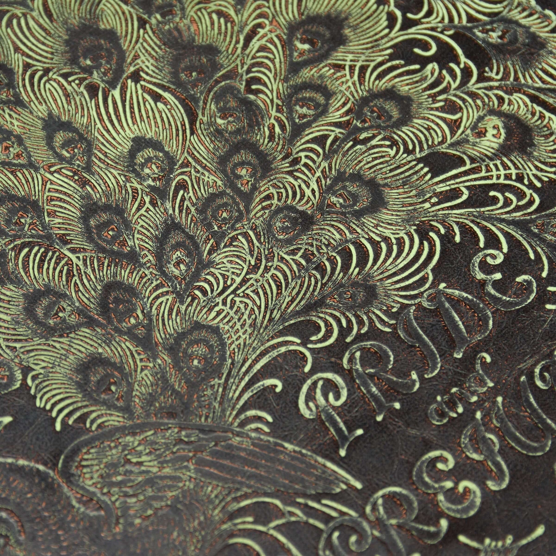 Embossed Art Nouveau feather and peacock motif inspired by vintage bookbinding