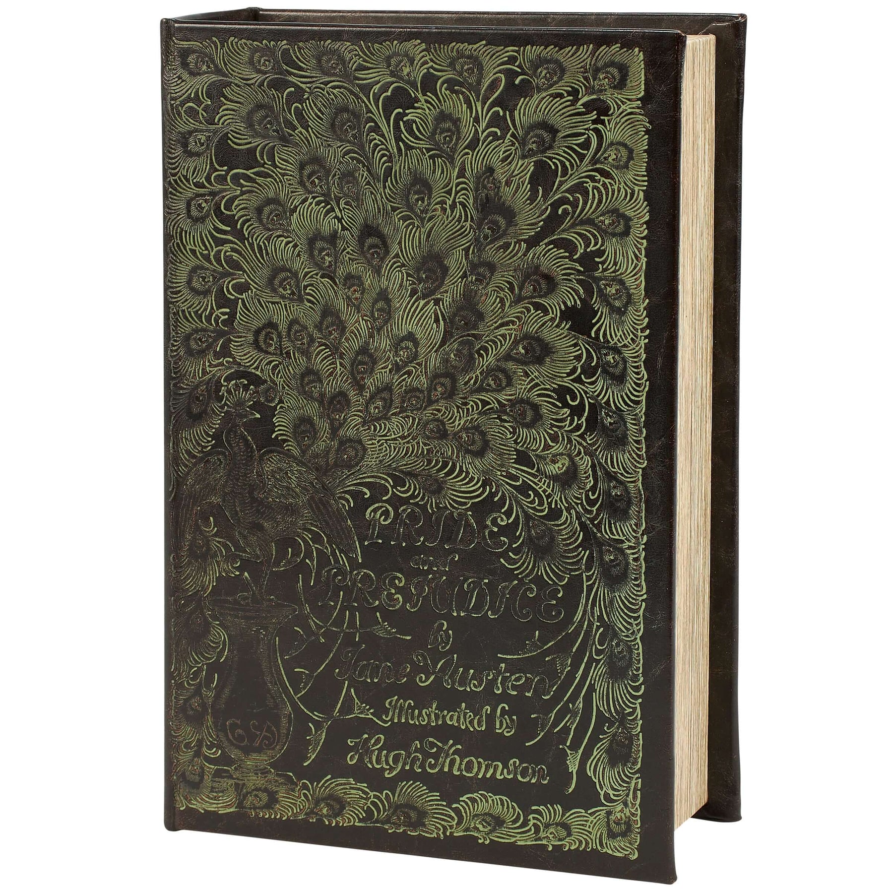 The Pride and Prejudice Faux Leather Storage Book Box captures the timeless sophistication of Jane Austen’s world through exquisite craftsmanship and design. Cloaked in deep, dark tones and adorned with an intricate peacock motif, this decorative piece evokes the grandeur of turn-of-the-century bookbinding — that golden era when literature and art were intertwined. The embossed details shimmer softly in the light, their Art Nouveau feather design swirling across the cover like a secret waiting to be discovered.