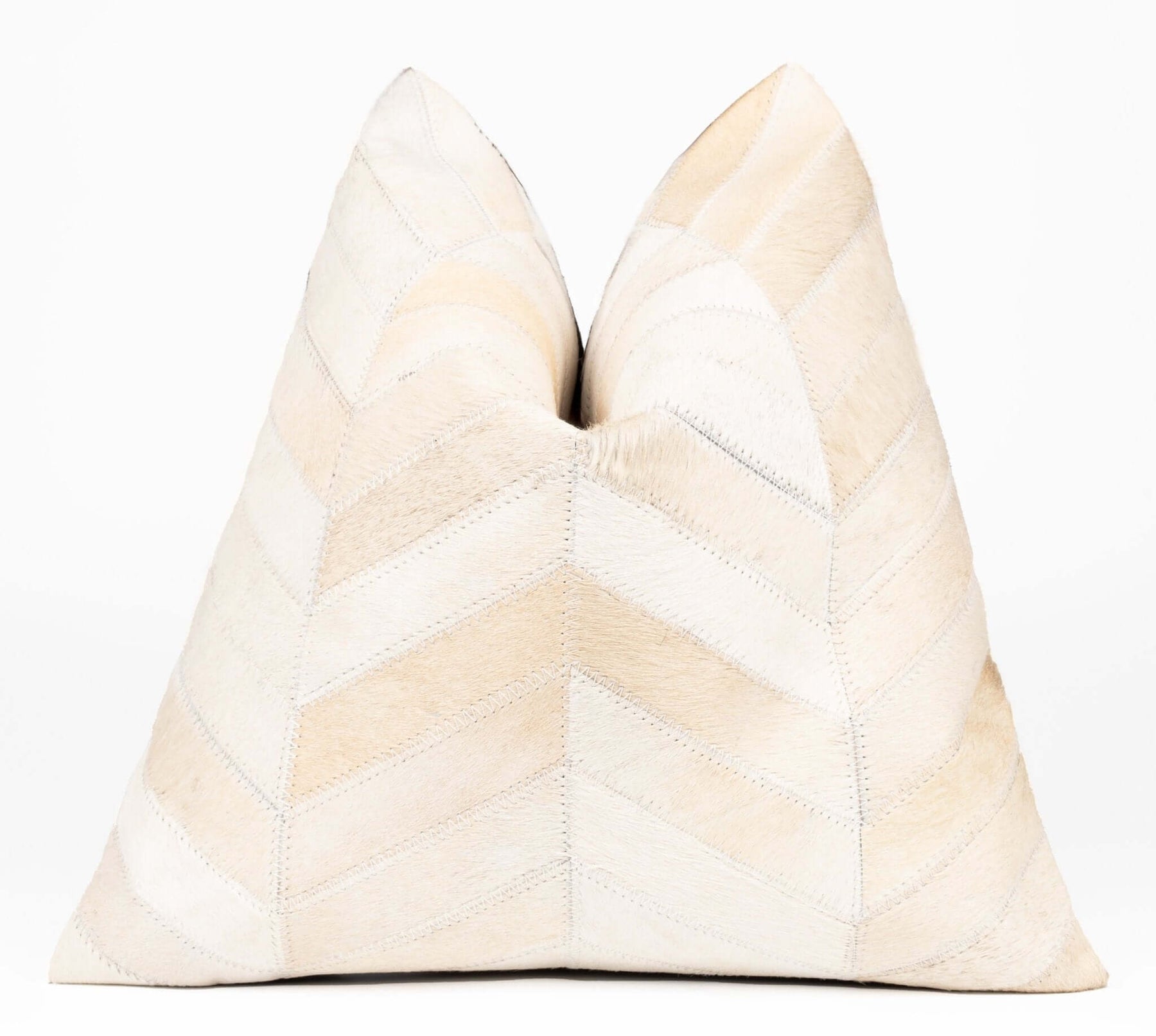 Picture these pillows resting on a linen sofa bathed in morning light, or layered with woven throws in a reading nook. The creamy tones lend softness to rustic wood textures, while the subtle sheen of cowhide catches the light with quiet sophistication. Feather-down inserts ensure plush comfort, providing not just beauty but indulgent relaxation. These Cream Chevron Cowhide Leather Throw Pillows invite touch — smooth yet natural, structured yet tender — a perfect complement to spaces that value both authenticity and ease.