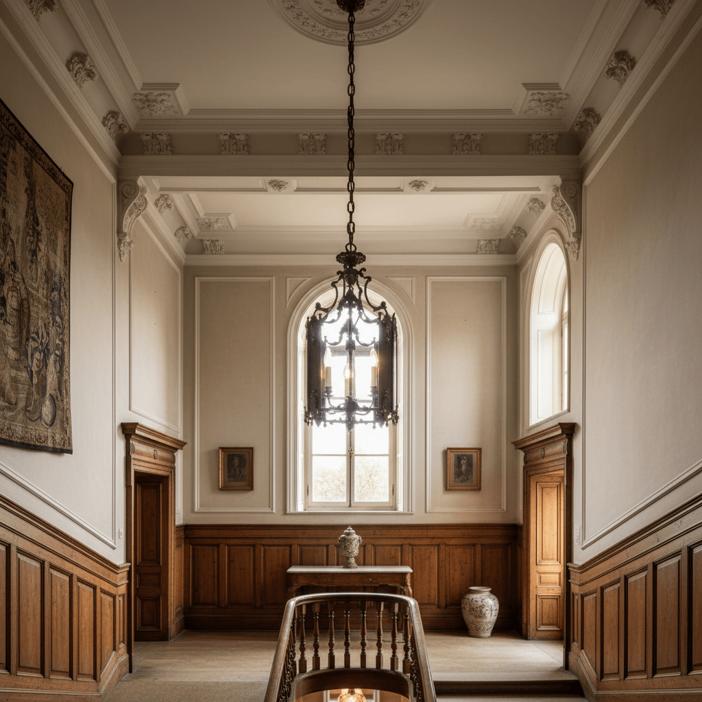 When illuminated, the vintage-style chandelier radiates a warm, romantic light through four or six bulbs, each delicately set within the lantern’s sculpted interior. The design celebrates the architectural drama of Old World Manor Décor, harmonizing effortlessly with both grand foyers and intimate dining rooms. Whether suspended above a marble-topped entry table or gracing a vaulted ceiling in a heritage-inspired living room, this piece commands attention without ostentation — its beauty rooted in craftsmanship, proportion, and restraint.