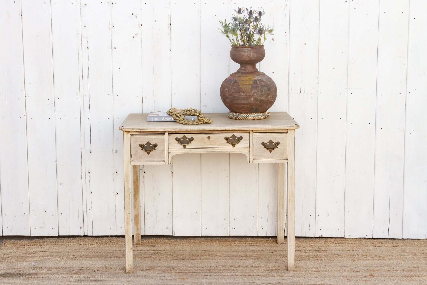 The Antique Bleached English Lowboy Side Table rewards both collectors and decorators alike. To the collector, it offers historical integrity: original fittings, genuine patina, and construction methods characteristic of Georgian England. To the designer, it offers stylistic flexibility: equally at home in a coastal cottage, a farmhouse, or a modern apartment with vintage leanings. To own it is to hold a piece of English domestic history — one that gracefully bridges centuries and styles.