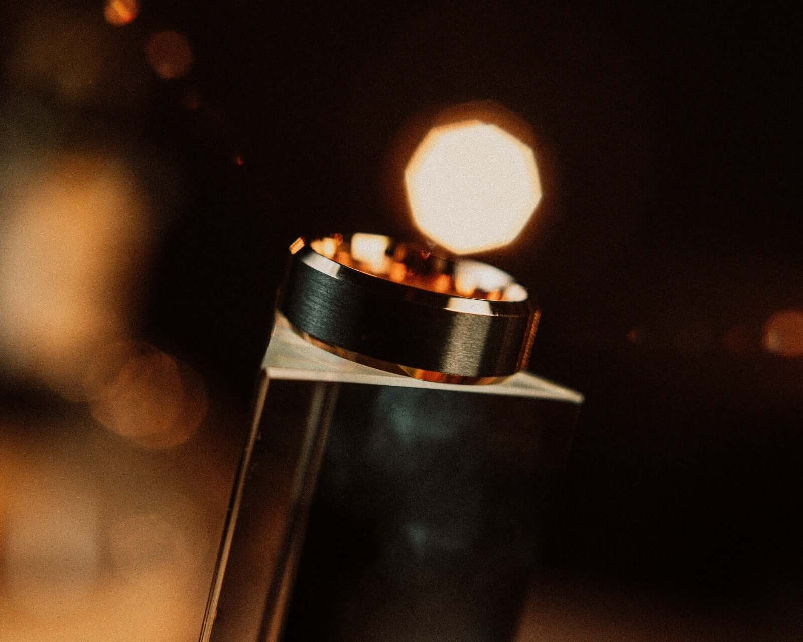 The Art Deco Gold Gatsby Ring for men is a study in contrast and control — the interplay of brushed black tungsten carbide with the warmth of precious gold plating. Its sleek, dark exterior exudes quiet confidence, while the polished gold interior glows like a secret meant to be discovered. The balance of shadow and shimmer, strength and grace, evokes the timeless refinement of Gatsby’s world — where luxury lived not in excess, but in exquisite detail.