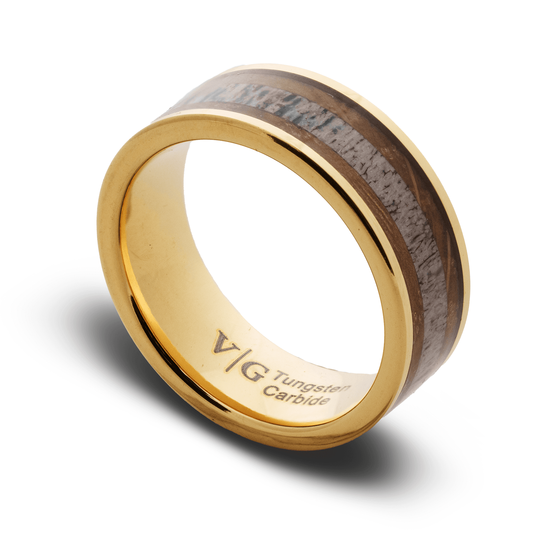 A Distinguished Men's Wedding Band with Whiskey Barrel and Antler Inlay – The Churchill Ring in Gold Tungsten