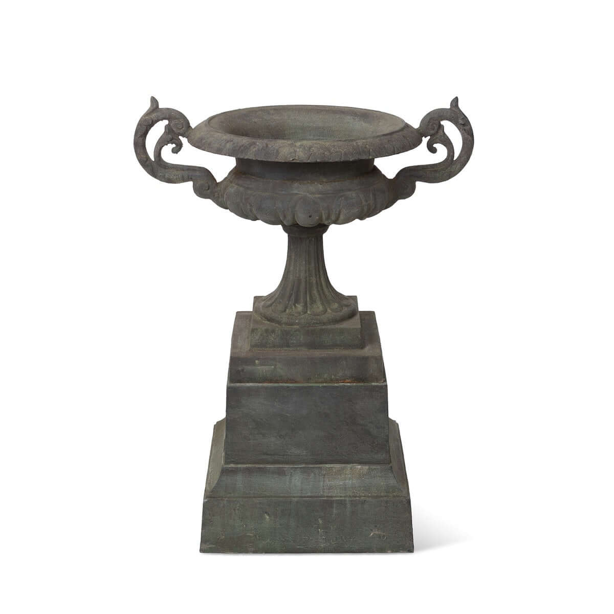 Whether placed beside a grand entryway, framing a courtyard fountain, or standing proudly along a garden path, the Cast Iron Garden Urn on Plinth with Scroll Handles brings a sense of heritage and timeless elegance to its surroundings. It is not merely an antique-style planter, but a sculptural relic of classical design — one that invites quiet reflection and transforms the landscape into something enduring and poetic.