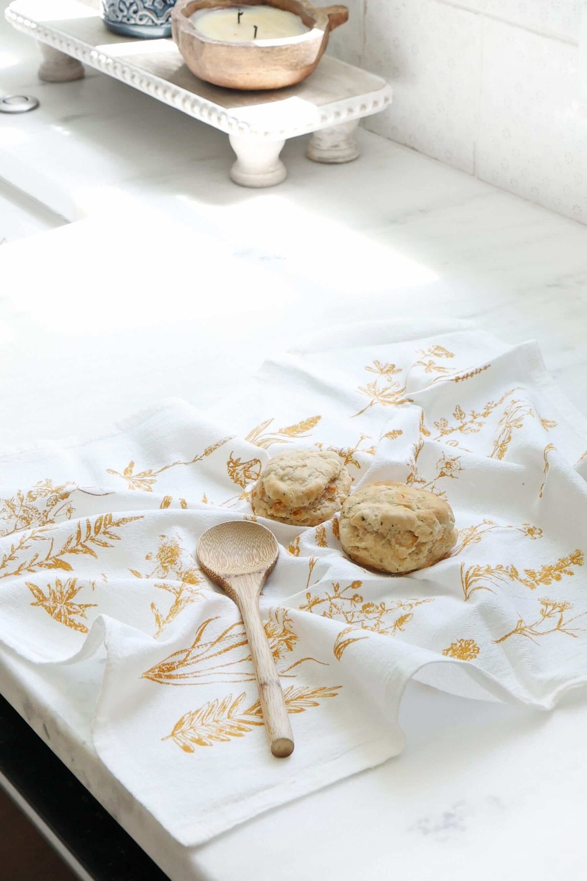 The watercolor-style wildflower print — in soft golden hues — is designed and hand-printed by a small local studio in Leoma, Tennessee, using fair-trade cotton sourced from India. Each piece carries subtle variations that make it uniquely yours, much like the organic scatter of petals across a summer meadow. The Vintage Wildflower Botanical Tea Towel invites the charm of the past into modern life, seamlessly fitting within Cottagecore, Vintage Farmhouse, or French Country décor.