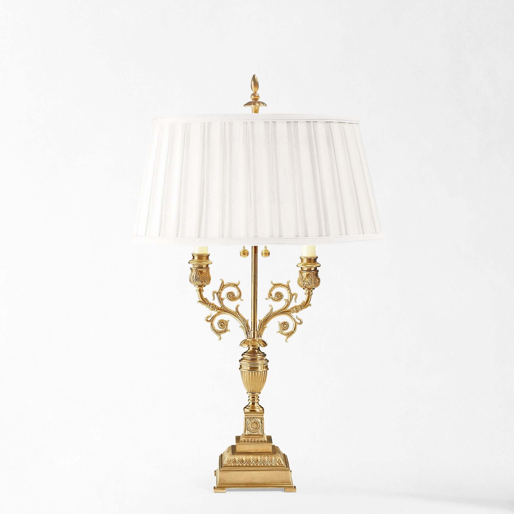 Antique Brass Candelabra Table Lamp with Pleated Shade