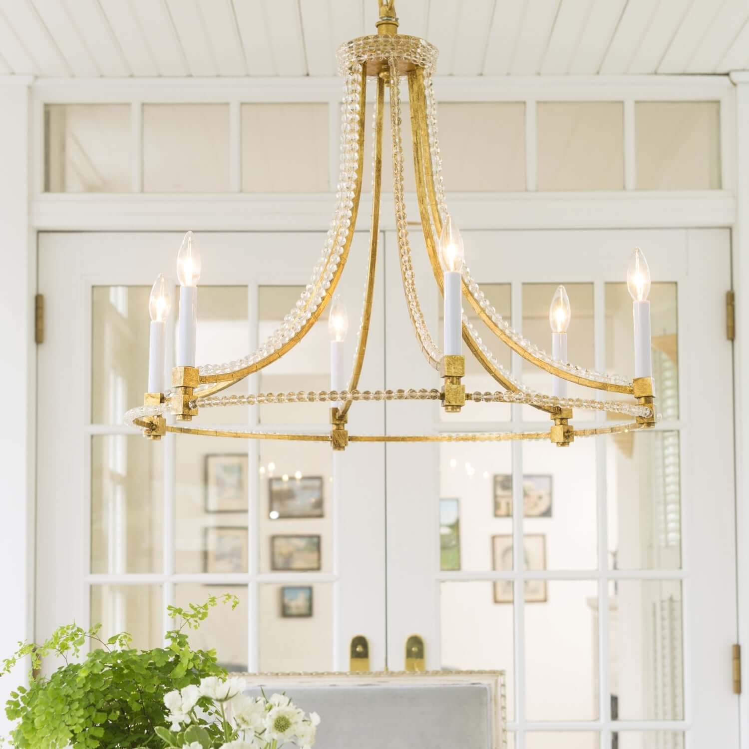 This is the spirit of Vintage Glamour — a style that embraces elegance not as ostentation, but as a language of grace. The Antique Gold Leaf Chandelier with Glass Beads bridges eras effortlessly: classical in silhouette, yet perfectly at home within contemporary interiors seeking warmth and character. Its beauty lies not in perfection, but in the subtle irregularities of handcraft — a faint brushstroke of gold leaf here, a minute variation in glass there — each a signature of its maker.