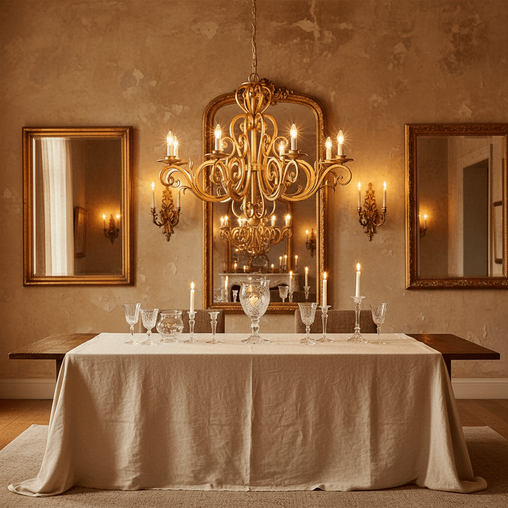 French country is rustic elegance—stone floors, distressed wood, and romantic details. Lighting echoes this with wrought-iron chandeliers, lantern pendants, and linen-shaded sconces. Finishes in cream, soft gold, or patinaed bronze feel authentic. Place chandeliers above dining tables, sconces along hallways, and lanterns in kitchens. Warm 2200–2700K bulbs soften the look, creating homes that are both refined and relaxed. French country lighting feels timeless, like suppers lingering in candlelit farmhouses of Provence.