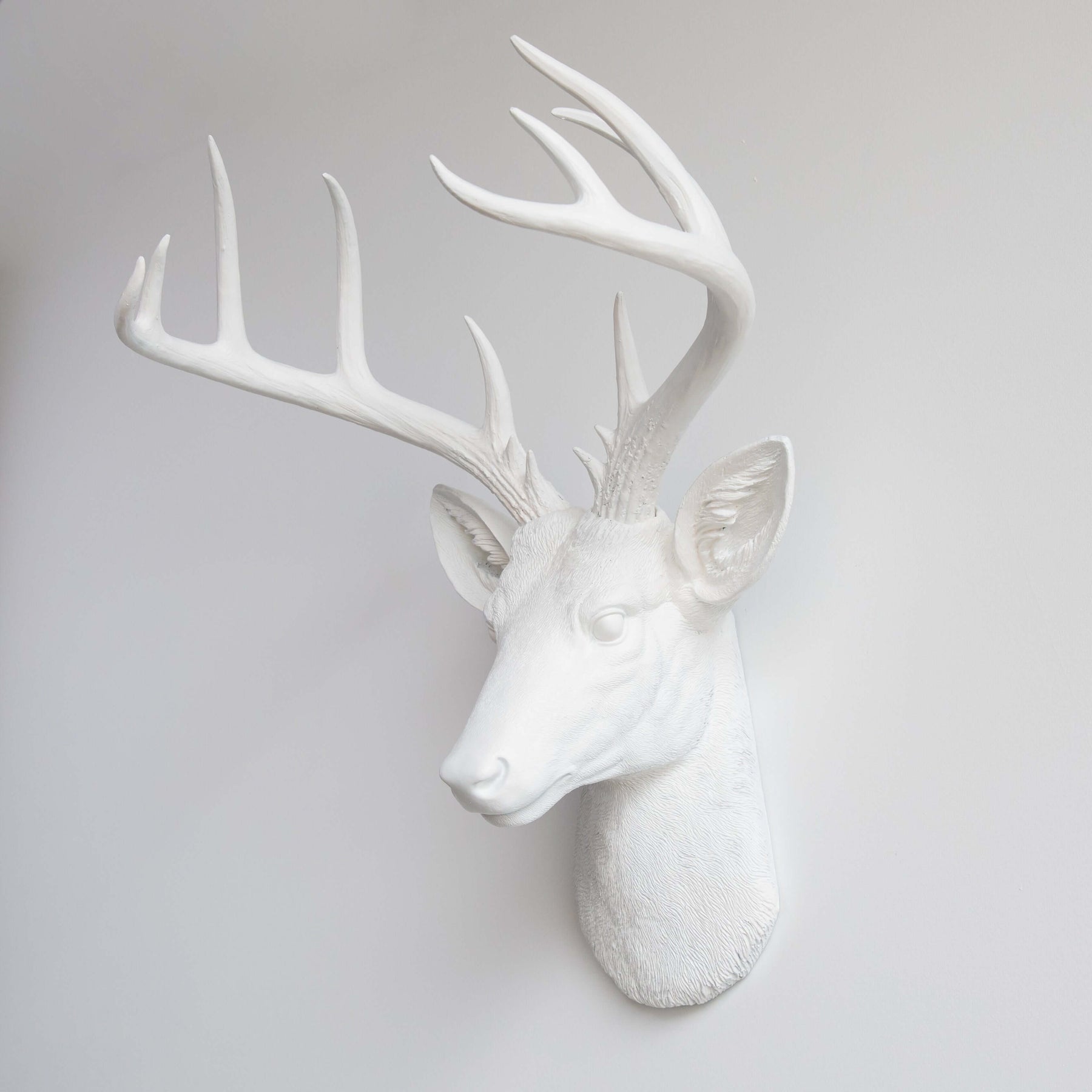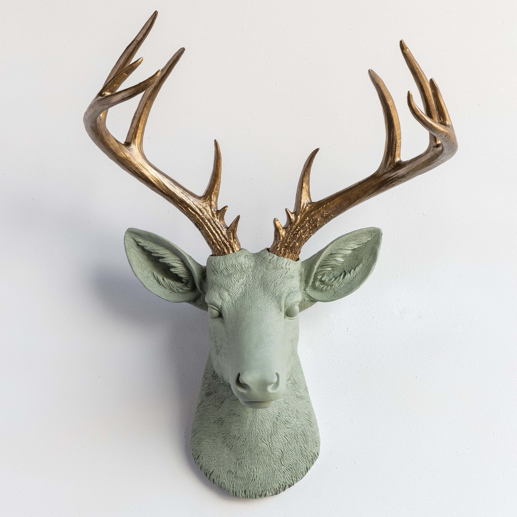 The crisp, matte white bust contrasts beautifully with the lustrous antlers, shown here in a polished metallic gold finish, creating a harmonious balance between simplicity and opulence. This combination evokes both modern minimalism and Vintage Glamour, recalling the grace of 19th-century trophy rooms but reinterpreted for the conscientious collector.