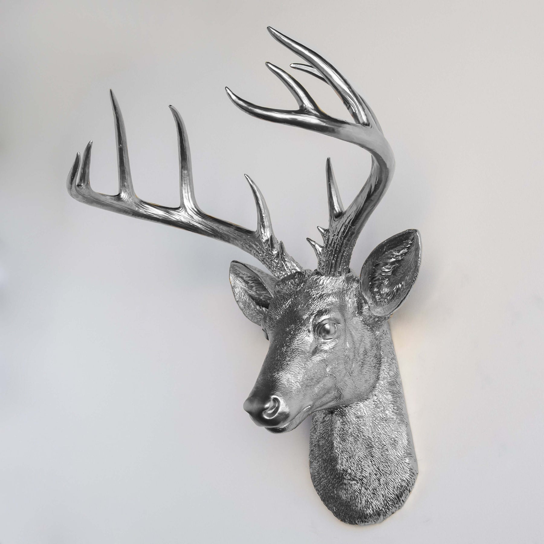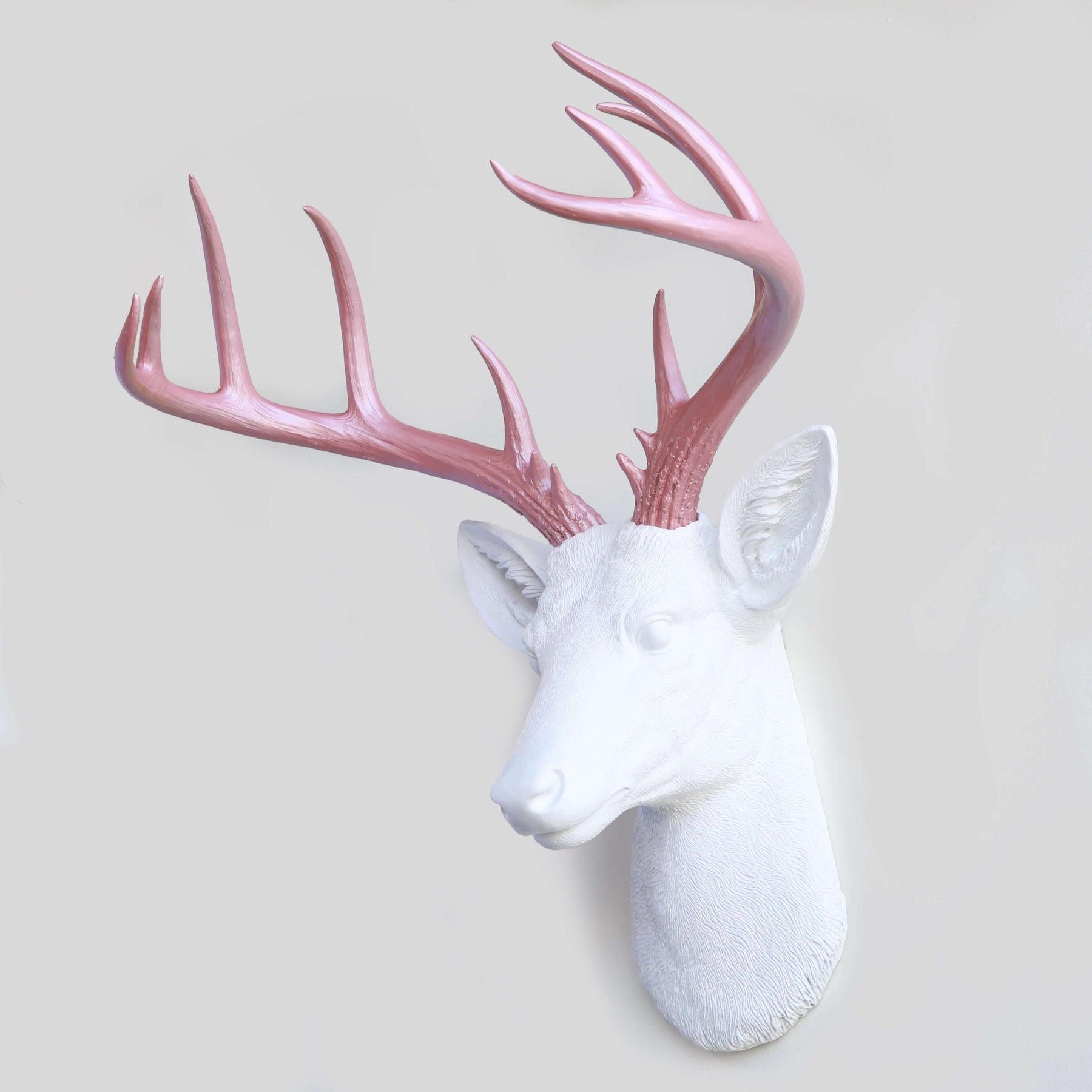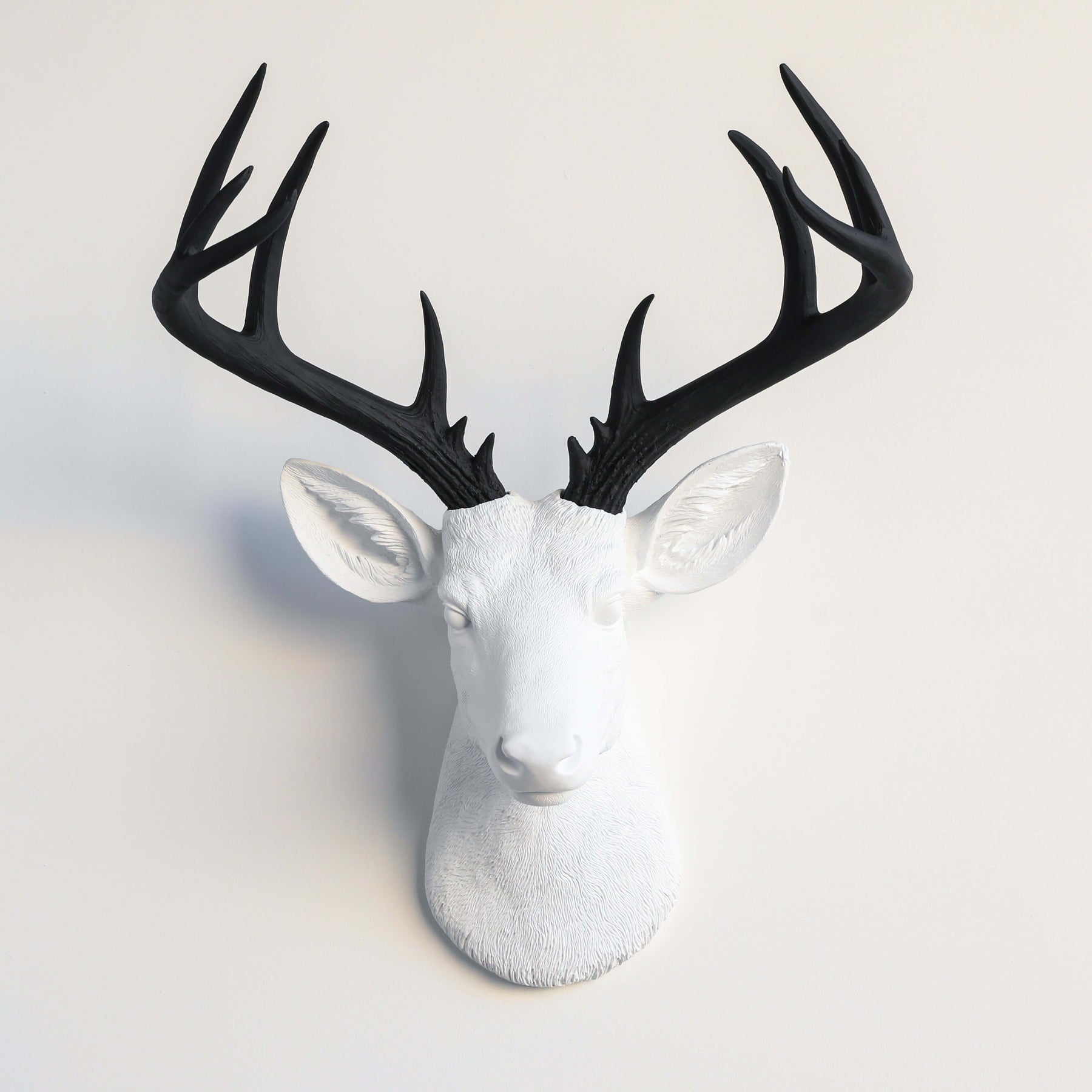 Your Handcrafted Faux Deer Head Wall Sculpture arrives in three pieces: the head and two antlers.