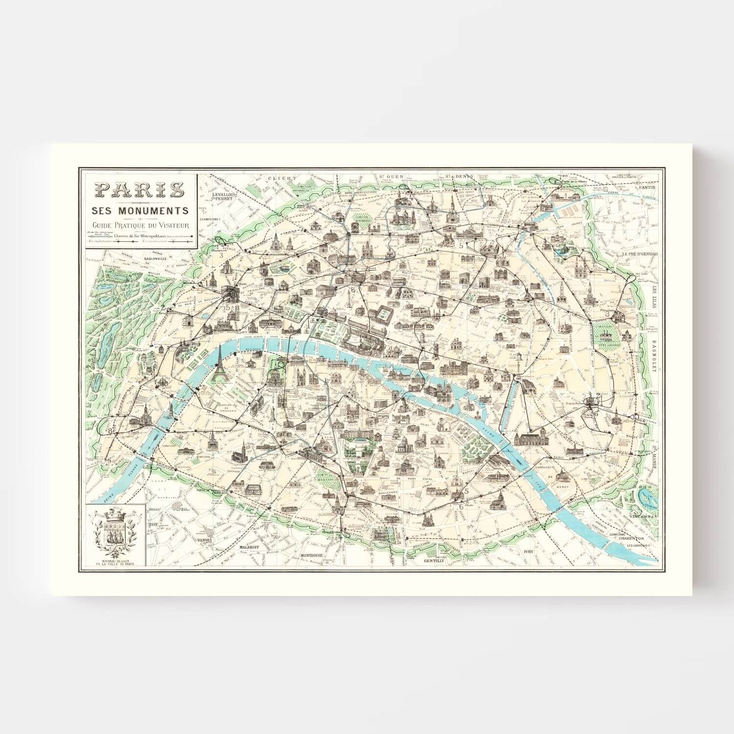 • Faithful reproduction of the 1905 Paris et ses Monuments map