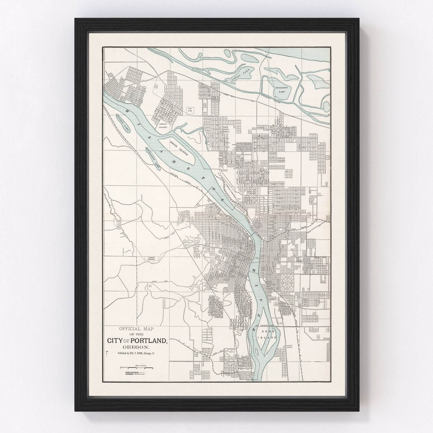 The Antique Map of Portland, Oregon from 1901 offers a captivating glimpse into the early days of one of the Pacific Northwest’s most dynamic cities. Restored with care and precision, this archival reproduction captures Portland at a pivotal moment — poised on the edge of modernity yet still intimately tied to its natural landscape of rivers, forests, and gentle hills. It is both an artwork and an artifact, a record of a city whose streets and waterways formed the foundation of its enduring spirit.
