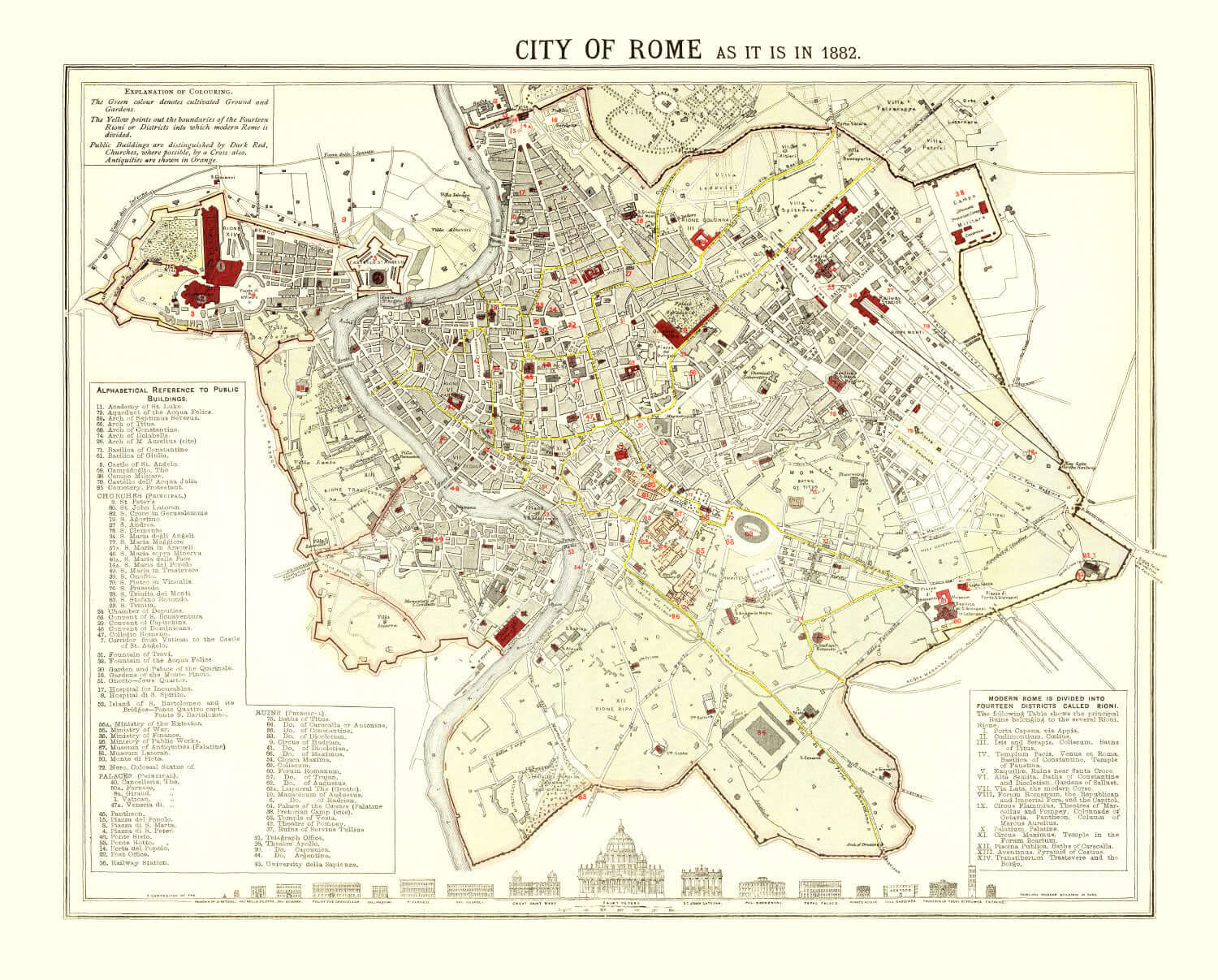 Faithful reproduction of the 1883 City of Rome lithographic map