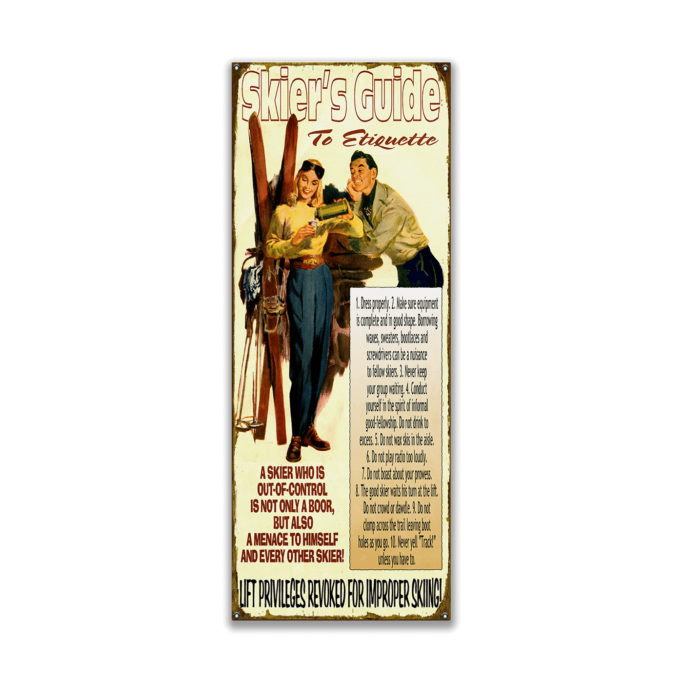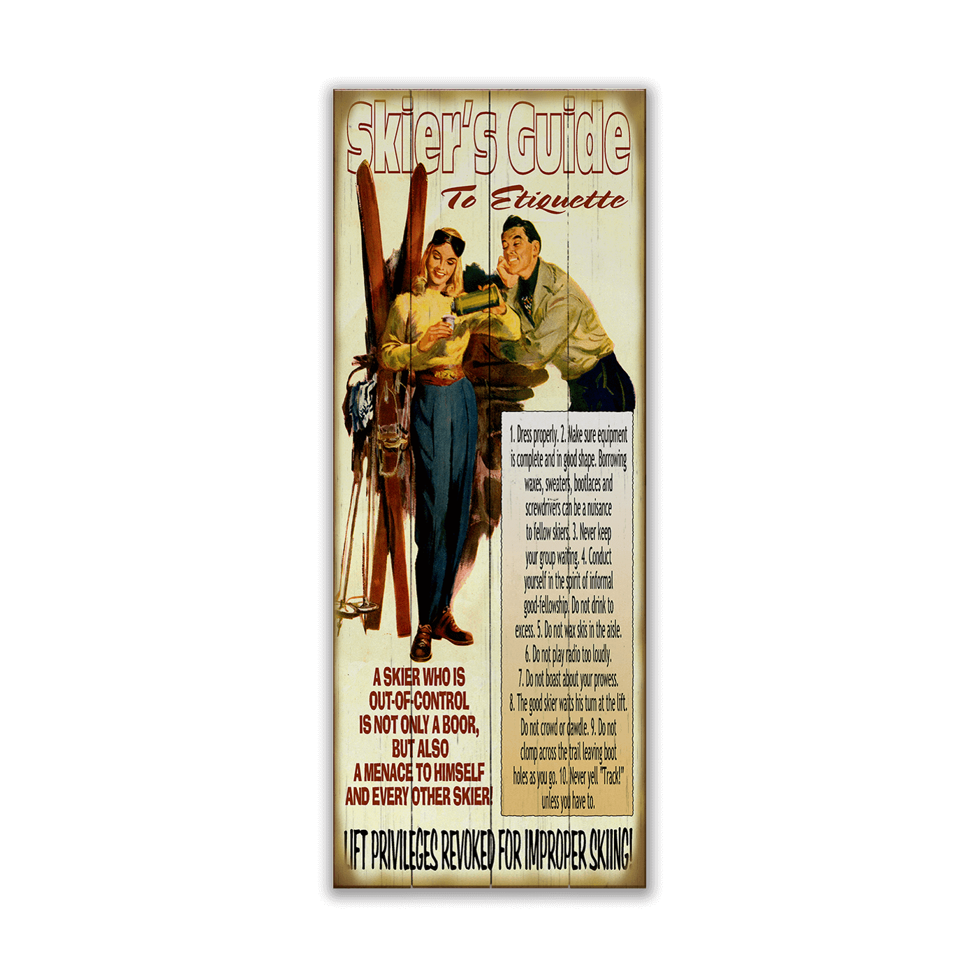 Before neon ski suits and high-speed lifts, there was a time when skiing was as much about style and civility as it was about speed. The “Skier’s Guide to Etiquette” Wood & Metal Wall Art captures that golden age of alpine leisure — a lighthearted, vintage-inspired reminder that good manners never go out of season.