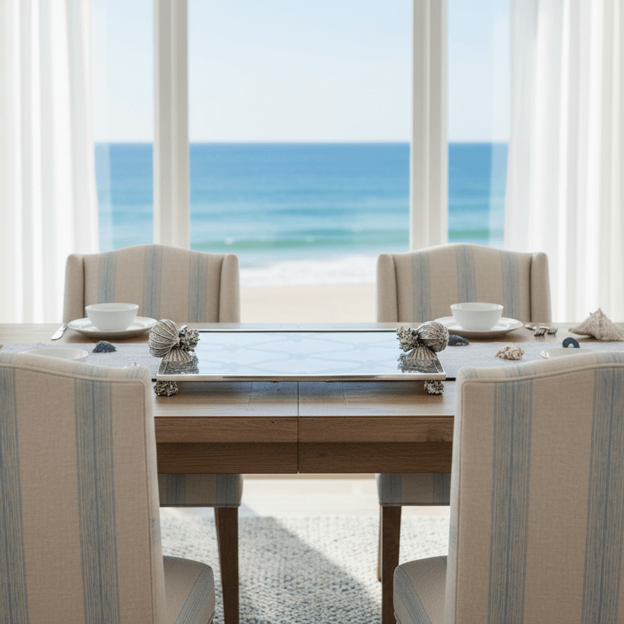 Imagine it at the heart of a coastal home — perhaps resting upon a weathered teak console or the polished expanse of a marble dining table. Laden with glistening oysters on crushed ice or with an array of silvered votives flickering in the dusk, the Vintage Pewter Marine Life Glass Tray becomes not just a serving piece, but a conversation in form and atmosphere. It brings to mind seaside evenings filled with laughter, candlelight, and the distant hush of waves. In every detail, it celebrates the artistry of marine-inspired living — a poetic echo of the ocean’s grace.